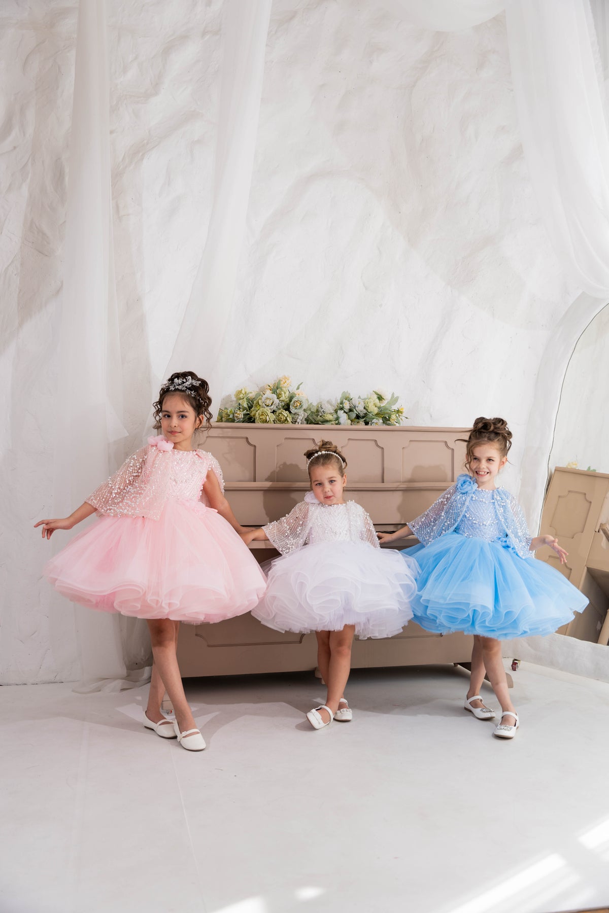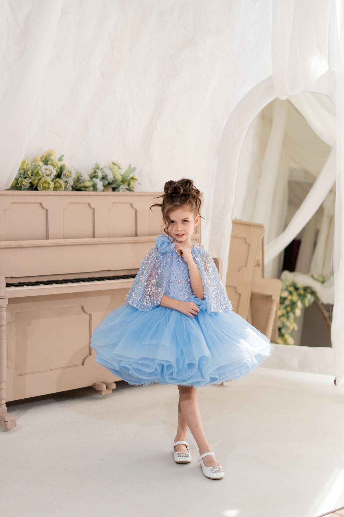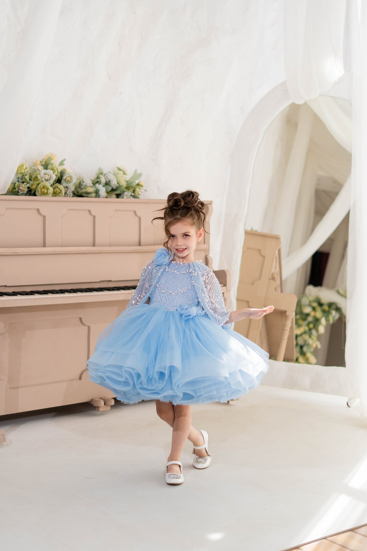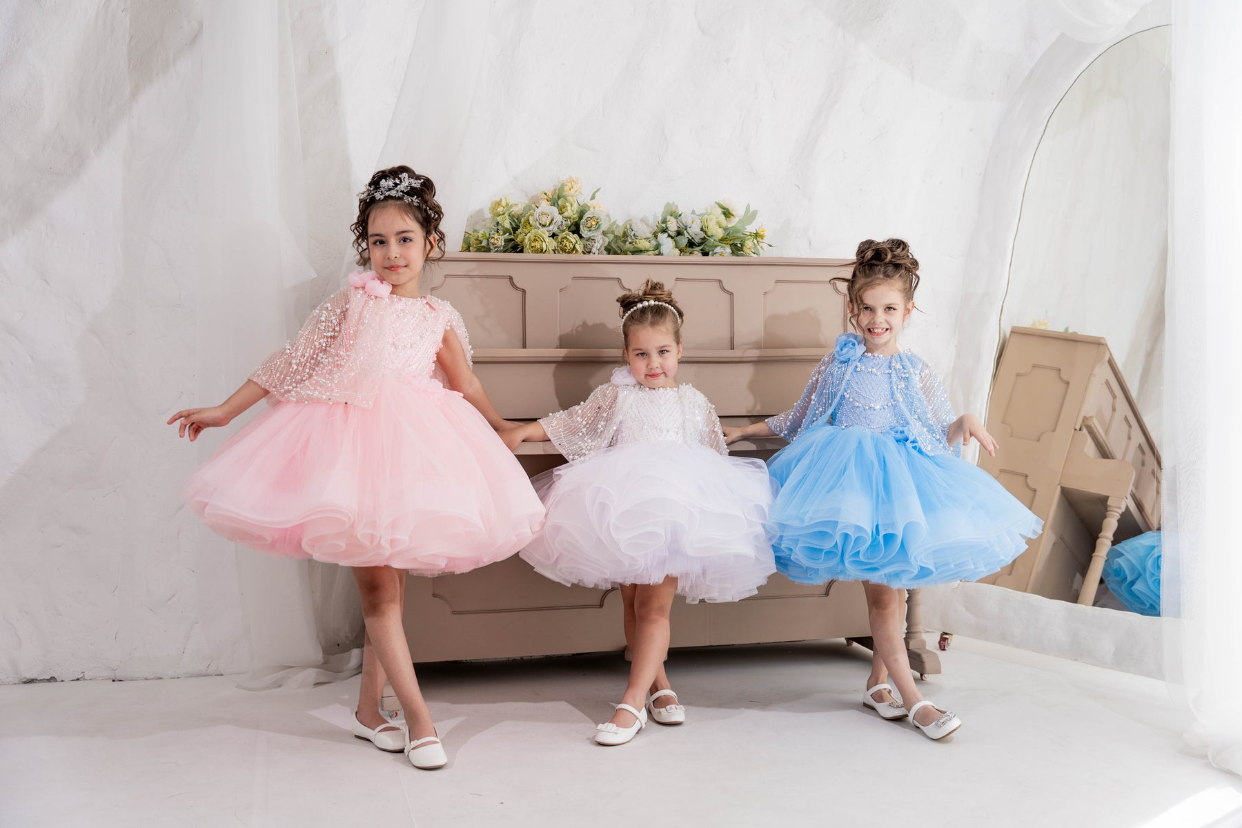 From Belle's  inspired iconic yellow gown to the magical sparkle of Elsa's inspired ice blue dress, our collection features a range of styles and colors to suit any little girl's taste. But we don't stop there - we also have elegant and timeless dresses for special occasions like baptisms dresses, first communion dresses, pageant dresses for girls, flower girl dresses, special occasion dresses for girls and more.